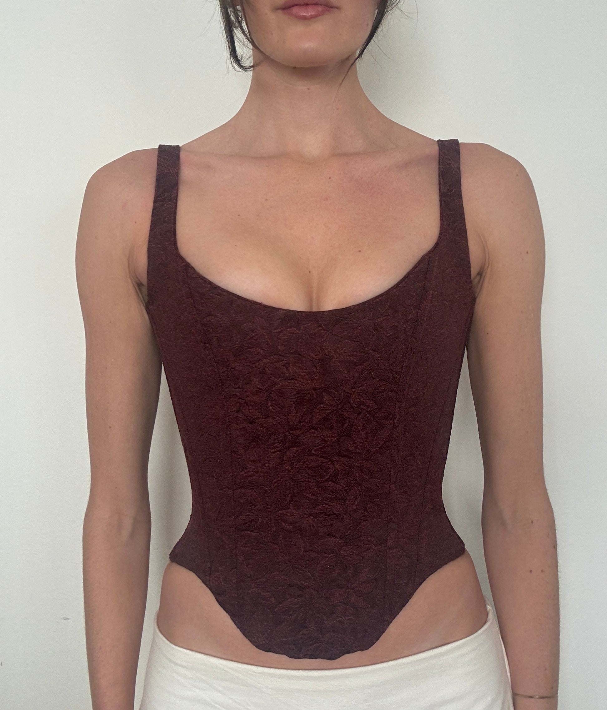 The Alara Corset is a rounded neckline mid-length corset. This top sits just over your hip bones accentuating the wearers figure with a curved hemline. This corset also has boning, back adjustable lace up closure, and adjustable straps to ensure the best fit.