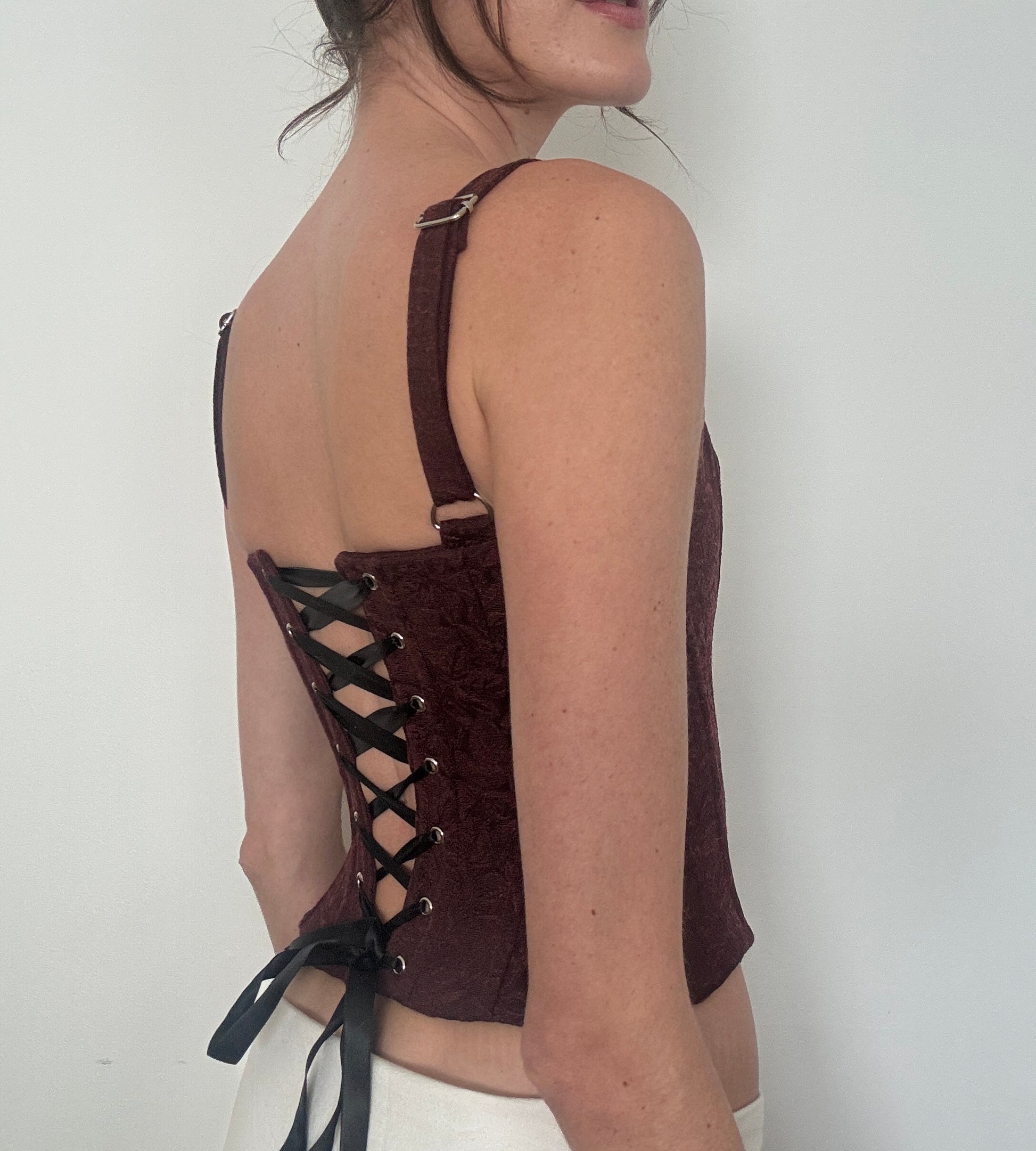 All of our corsets are hand made with up-cycled fabrics so we suggest you remove the ribbons, hand wash and hang or lay flat to dry.