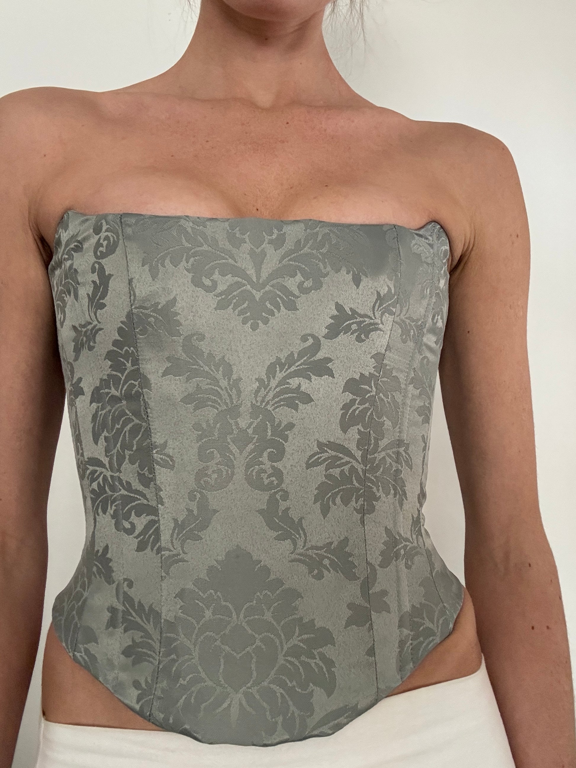 The Darling corset is a timeless straight style strapless corset. This top sits just over your hip bones accentuating the wearers figure with boning and a back adjustable lace up closure.