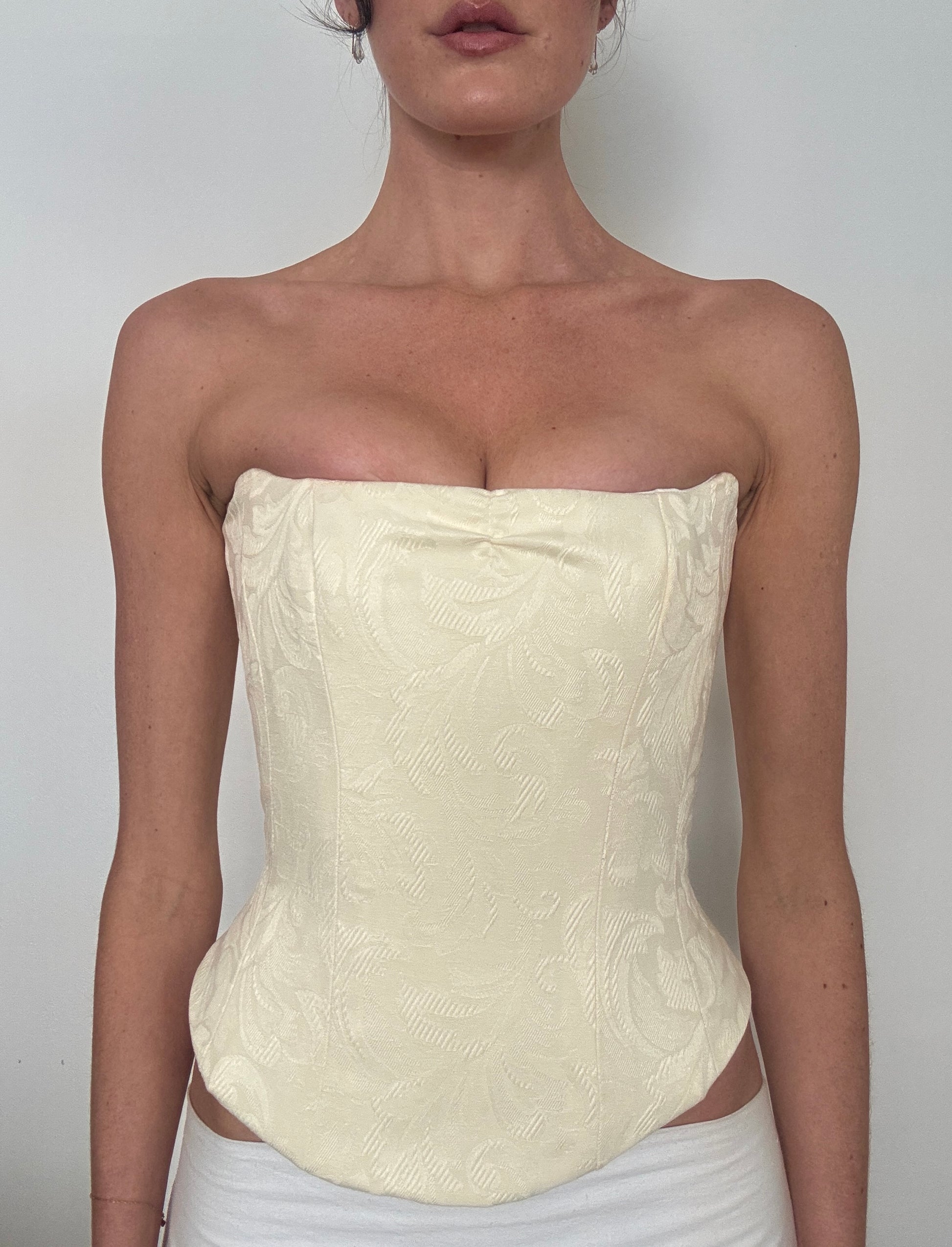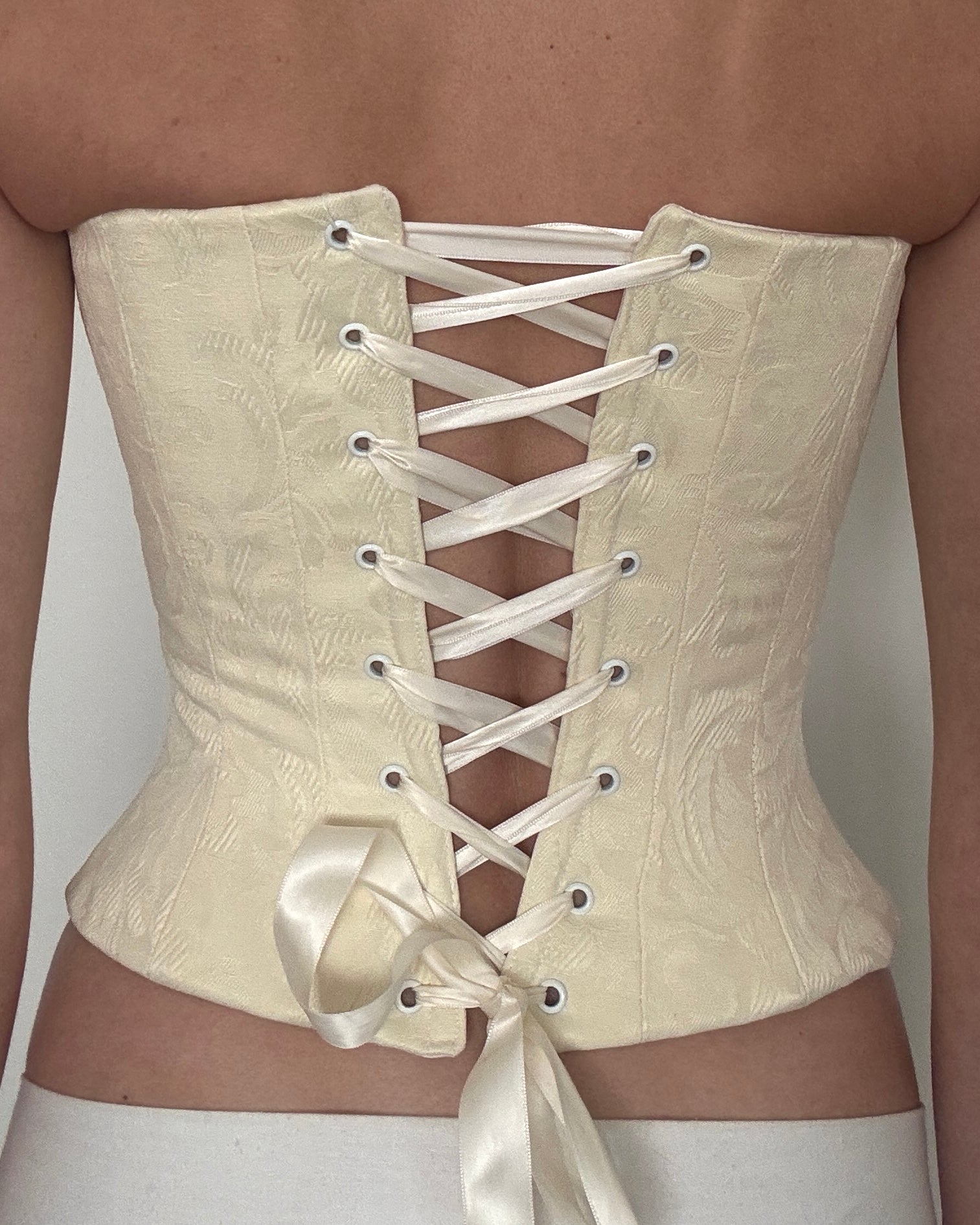The Hattie corset is a figure accentuating styled strapless corset. This top sits over your hip bones highlighting the wearers figure with boning and a back adjustable lace up closure keeping everything in place.